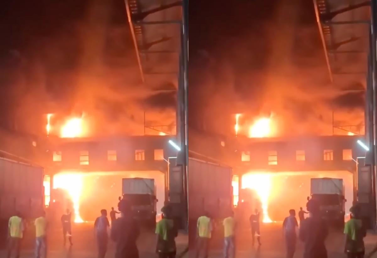 Awal Mula: Api pertama kali muncul dari sisi belakang gudang dan membesar dengan cepat (kurang dari 30 menit), dengan kobaran api setinggi belasan meter.