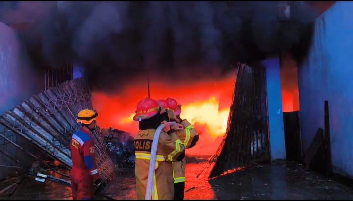 | Dampak Kerusakan | Api menghanguskan dua ruko/gudang yang difungsikan sebagai tempat penyimpanan bahan, seperti susu, popok bayi/pampers, pembalut, dan suku cadang kendaraan. Material yang mudah terbakar membuat api cepat membesar dan sulit dipadamkan. |
