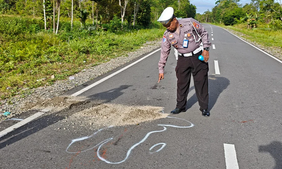 MIMIKA – Satuan Lalu Lintas (Satlantas) Polres Mimika, Polda Papua Tengah, melakukan olah Tempat Kejadian Perkara (TKP) terkait kecelakaan lalu lintas yang mengakibatkan satu orang meninggal dunia. Peristiwa tragis ini terjadi pada Senin, 08 Desember 2025, sekitar pukul 17.30 WIT, di Jalan masuk Kompi B Senapan, Kabupaten Mimika.