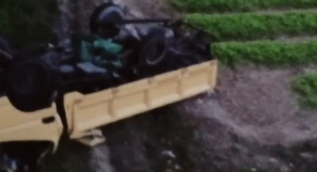 Truk tersebut jatuh dari ketinggian 5-6 meter. Truk terjatuh dengan posisi terguling dengan kondisi 4 roda di atas dan ringsek.