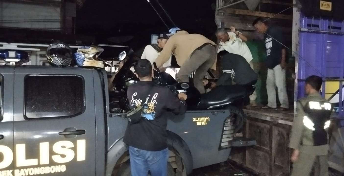 Kecelakaan melibatkan dua sepeda motor (Yamaha Vixion dan Honda CBR) dan satu unit truk.