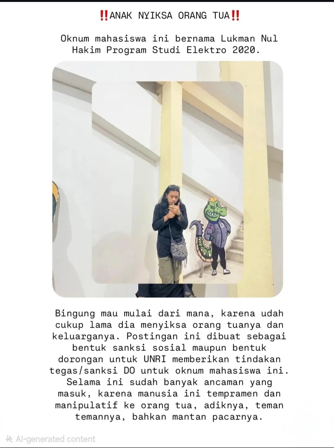 • Oknum Mahasiswa Teknik Elektro UNRI Diduga Peras Orang Tua Ratusan Juta demi Judi, Ancam Bunuh Ibu hingga Keluarga Mantan Pacar