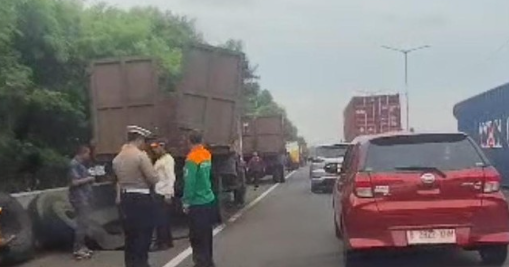Jakarta – Sebuah truk kontainer mengalami kecelakaan dengan dump truck di Tol Cakung, Jakarta Timur, arah Rorotan, Jakarta Utara. Peti kemas dari truk kontainer tersebut terlepas dan mengakibatkan kemacetan.
