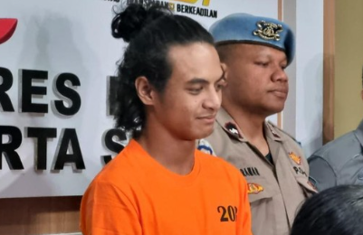 Dalam konferensi pers ini, polisi menghadirkan Vadel. Terlihat Vadel mengenakan baju tahanan berwarna oranye.