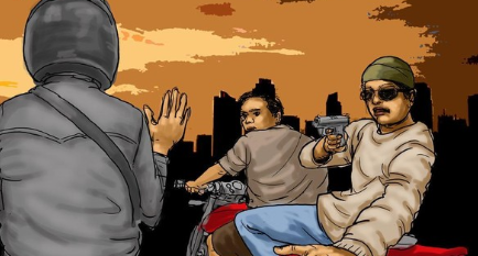 “Tidak lama 2 pelaku turun dan mengeluarkan senjata jenis pistol dan pelaku lainnya mengeluarkan golok. Lalu pelaku langsung mengambil motor. Pelapor lari menjauh, namun masih melihat para pelaku dari jarak 10 meter,” jelasnya.